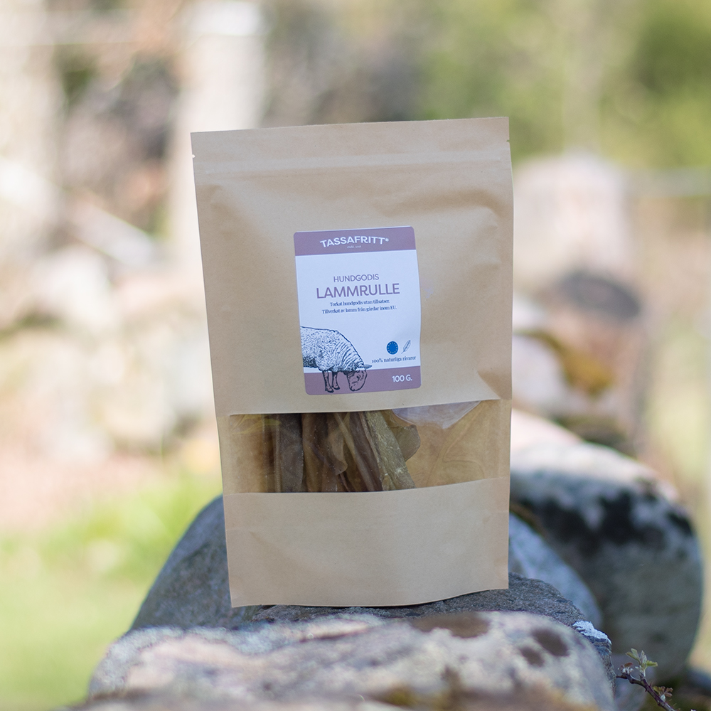 Lammrulle är ett segt tugg och som ger enklare tuggmotstånd till mindre och mellan hundar. Bitarnas storlek varierar något och är cirka 15 cm långa. Passar bra till hundar som inte vill ha ett alltför hårt tugg.